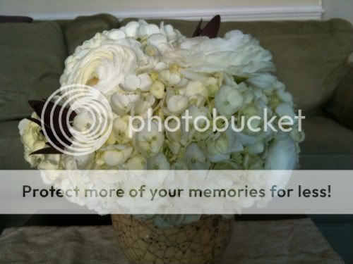 And I need to share this story about the Blue Hydrangea! I won't say where, but I saw them and picked them up so I could make good on my promise to Suzanne. Just like I do with all of my flowers, I took them home, trimmed the bottoms and put them in water with antibacterial floral food. Well, within hours the blue Hydrangea were basically dead. Wilted, dropping petals, droopy, ugly, shriveled, dead. So I took them back the store - where I buy A LOT of flowers - and asked for new ones. Easy trade, right? The floral manager gave me such a hard time! She was insulting and really passive aggressive....more or less accusing me of mis-treating them OR lying about when I bought them OR stealing OR all three. I ended up taking a bouquet of white Hydrangea to replace the sad blue specimen and bought 2 stems of blue elsewhere. Funny enough, my friend's mother had the SAME problem with blue Hydrangea from the SAME store as me... You can see in the picture below how droopy those hydrangea are!
